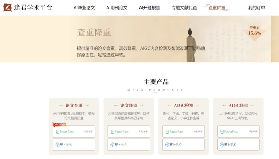 一、逢君学术【查重降重四件套】