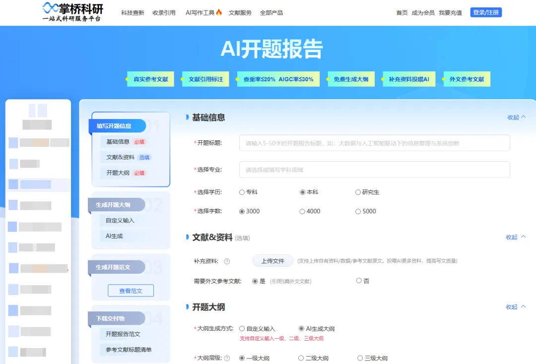 掌桥科研【AI开题报告】的文献资源不用多说,直接对接数据库,资源都是真实的,咱们随便检索都不怕事~