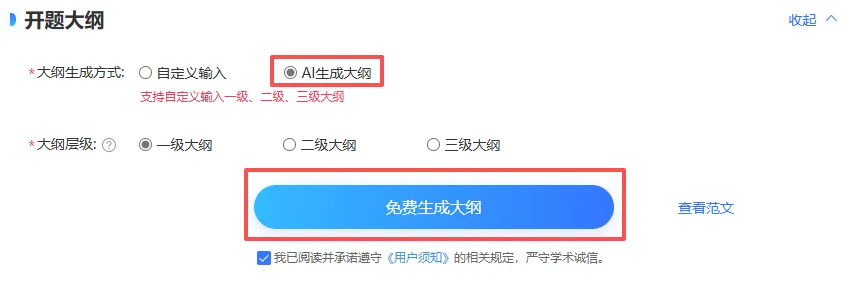 我们选择了这个大纲模版呢,那去生成开题报告正文的时候就是完全按照这个模版来写的。