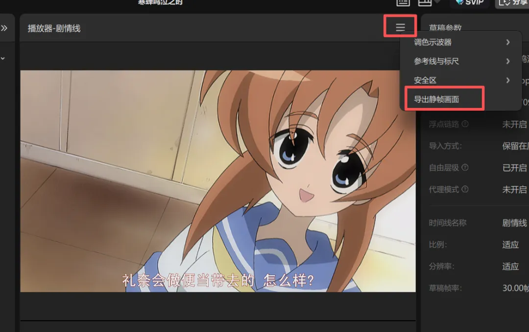 然后遇到人物较为整体的画面,我们就可以暂停一下,将该画面进导出:
