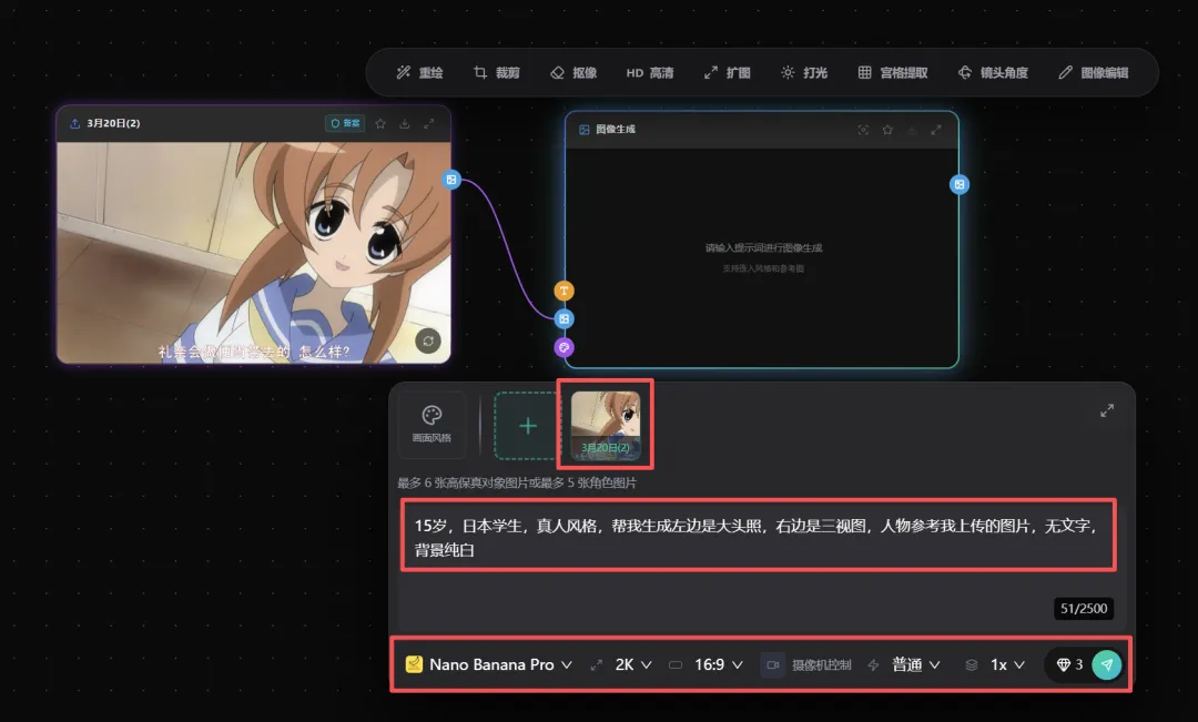 因为我们的短剧是基于动画版进行改编的,所以,人物的生成也需要尽可能的贴合原著。