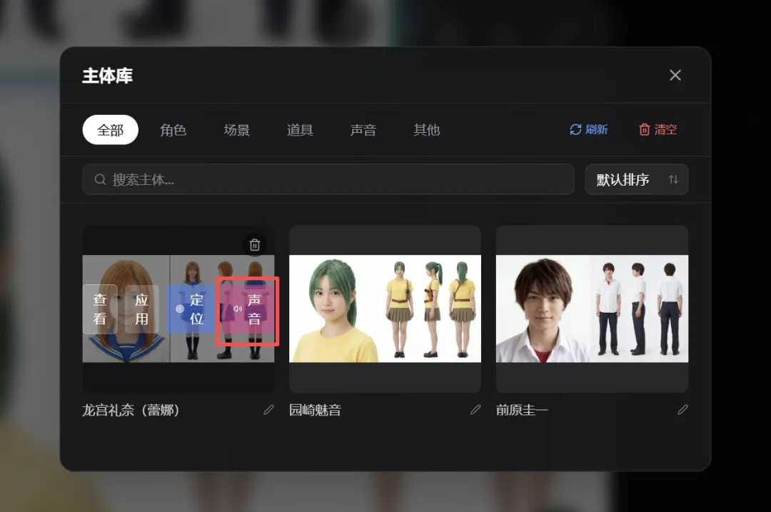 不过,单单有图像还是不够的,人物还需要增加配音,我们直接点击“声音”:
