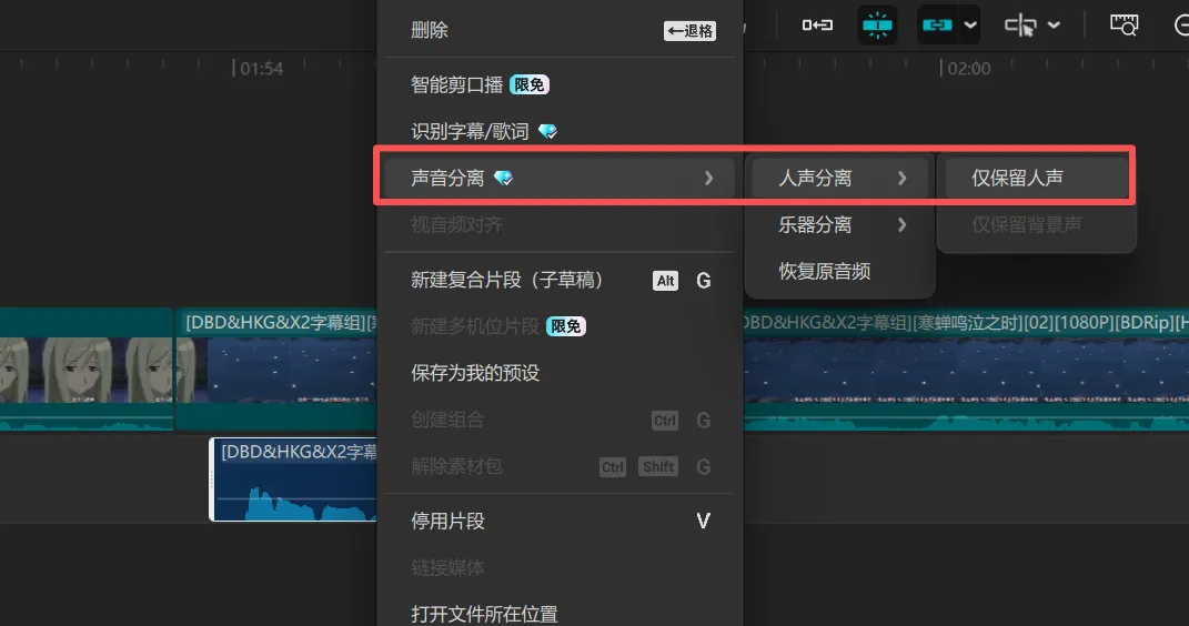 这里大家一定要记得选择“仅保留人声”,这样提取出来的音频效果更好: