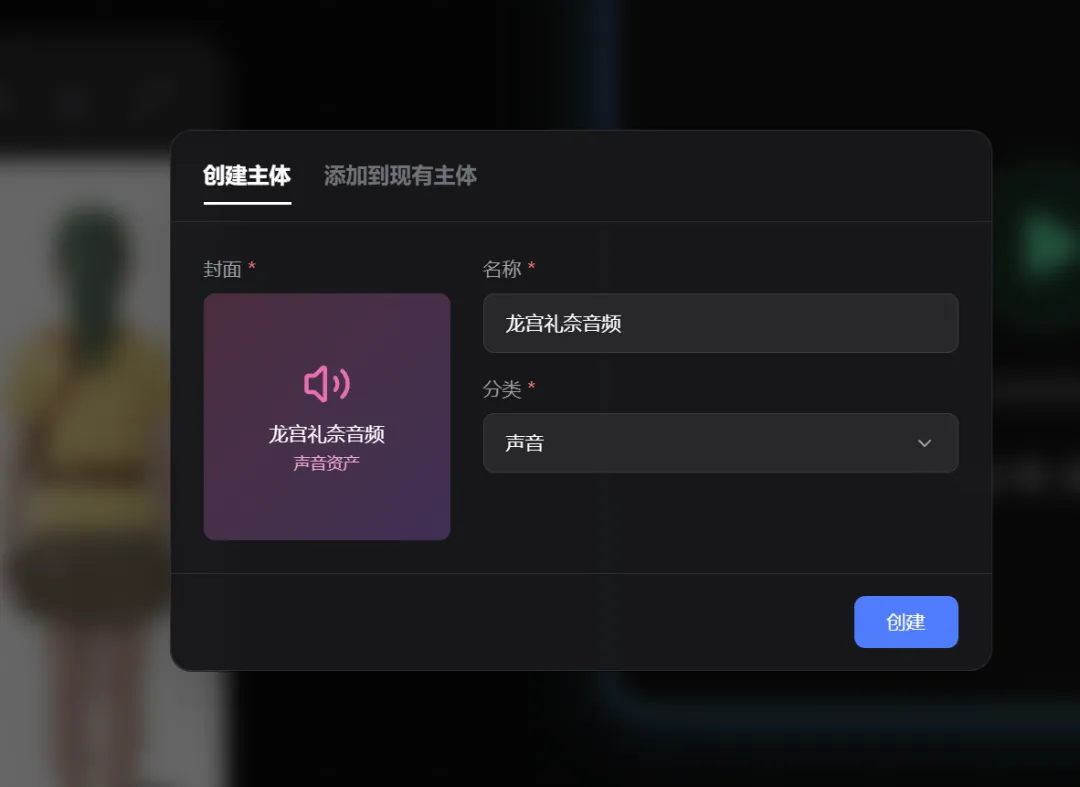 然后我们就可以使用刚刚创建的人物主体和音频主体进行测试看看:
