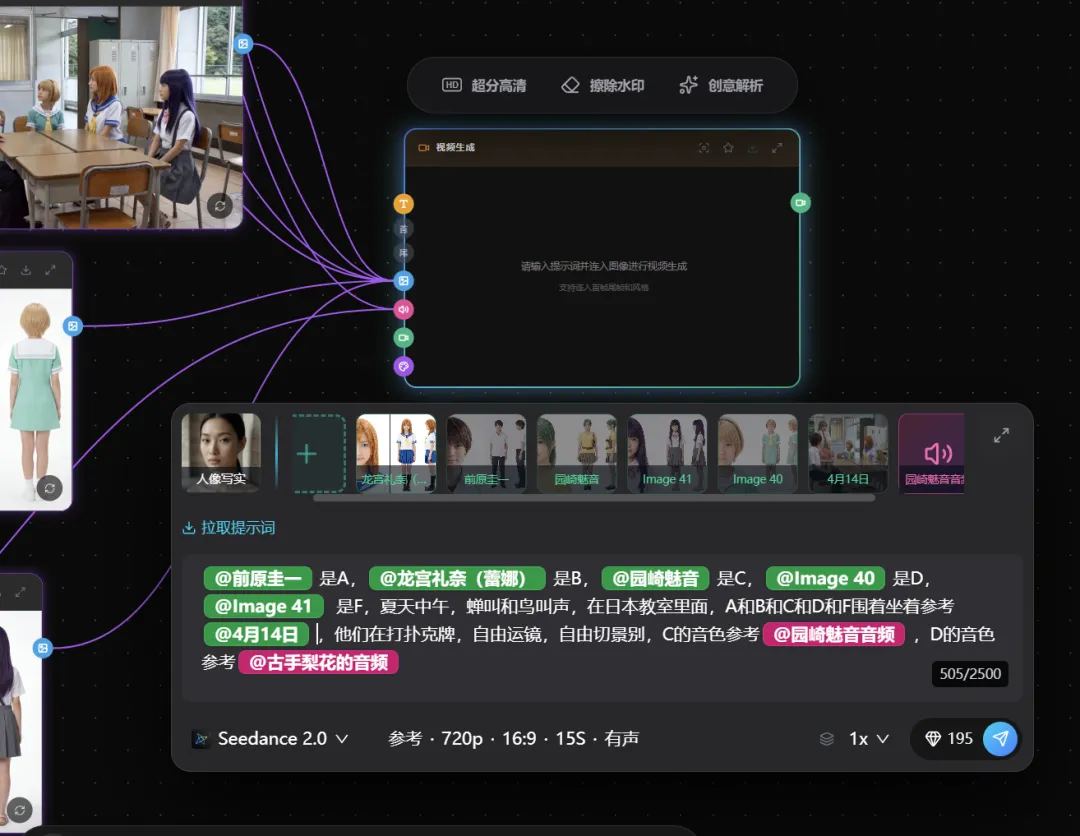 就是在一分钟内,多个人物可能会一直处于同一个场景,但是 Seedance 2.0 最长才支持 15s,在不同视频片段中,场景或者人物位置关系非常容易出现变化。
