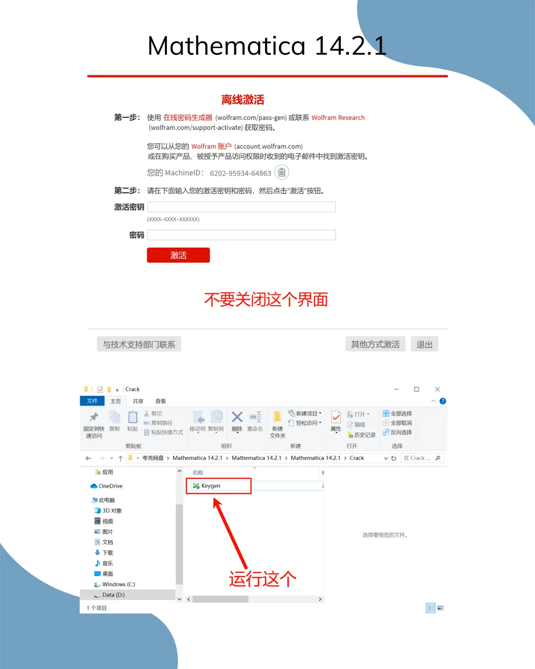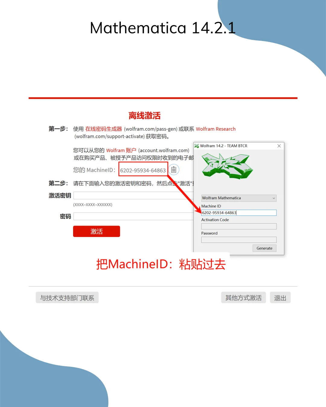 1. 激活页:启动软件,选择其他方式激活➡离线激活。记录屏幕显示的MachineID。
