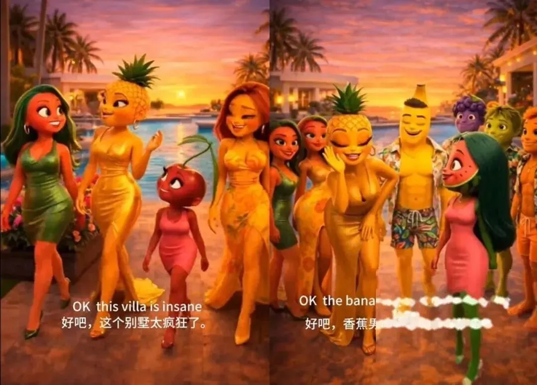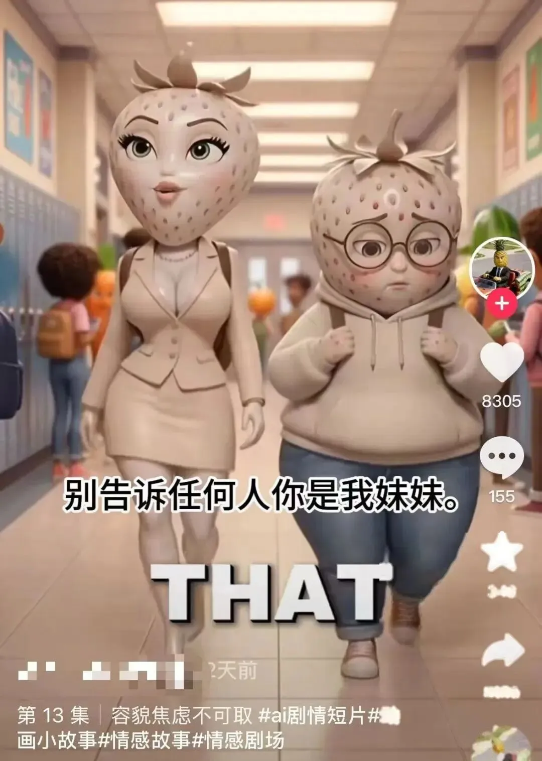 仔细想想也不奇怪。传统真人综艺一集得铺垫大半个小时,而AI水果剧两分钟之内就把暧昧、背叛、揭穿、翻脸、和好演完了,末尾还甩个悬念——你不追都难。