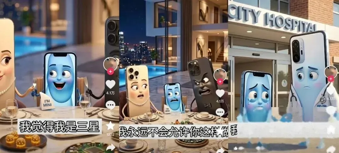 现在又冒出了"手机版剧情"——两个苹果手机的儿子想变成三星。谁来管管啊。