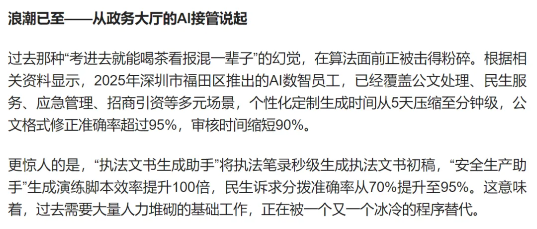 早在去年年初,《人民日报》海外版刊就发过一条消息:深圳福田区正式上岗70名AI "公务员",官方称其为“AI数智员工”。