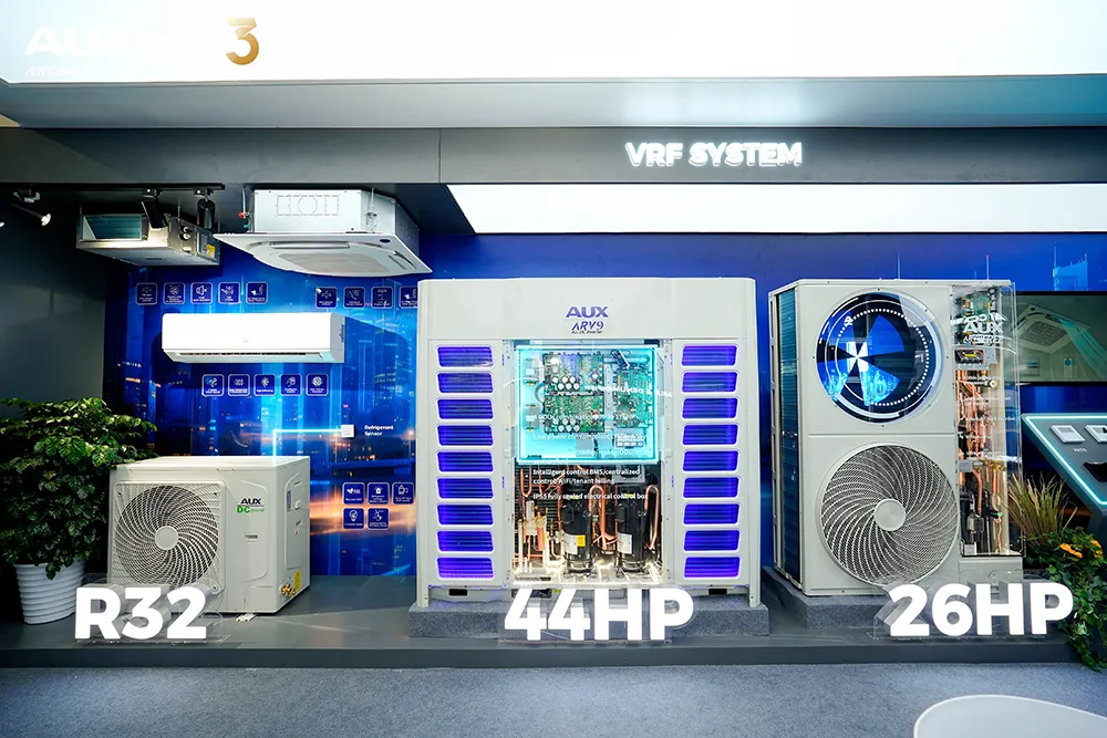 商用市场上,奥克斯同样展现出强劲的创新实力:商用空调顶出风44HP,侧出风26HP,单系统可支持4台并联,能力最高可达176HP/104HP,精准优化商业客户运行效率、降低能耗成本;固定拖热回收产品实现制冷、制热及生活热水一站式供应,助力商业客户实现能源循环利用;全新R290商用采暖热泵专为大型采暖场景量身定制,低温-10℃能力无衰减,极限低温-30℃稳定运行,可从容应对极寒工况与高水温需求,A+++能效,为全球商业客户提供高效低碳综合能源解决方案。