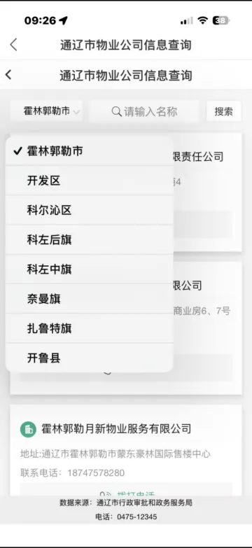 蒙速办APP操作指南丨通辽市物业公司信息查询一、打开蒙速办”APP首页,点击“办事”“部门服务”“通辽市物业公司信息查询”。二、选择区划三、即可显示要查询的物业公司撰 稿:赵 冕编 辑:姜 阳审 核:徐淑霞总 审:王 莹
