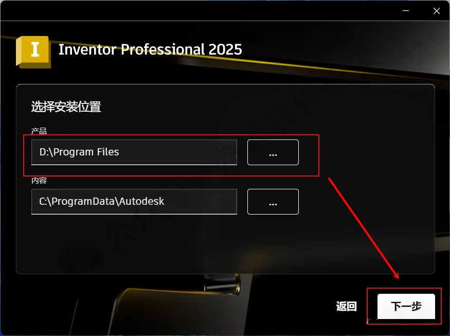 5、选择软件安装路径,建议和教程中的保持一致,本例安装在D盘(将路径地址中的首字符C改为D表示安装到D盘,或者可以在其它磁盘里创建一个新的文件夹,安装路径不要出现中文),点击“下一步”