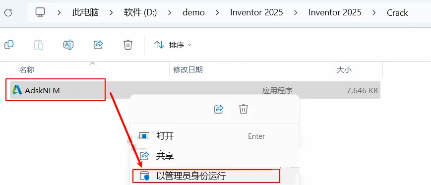 9.打开安装包里的crack文件夹,以管理员身份运行AdskNLM