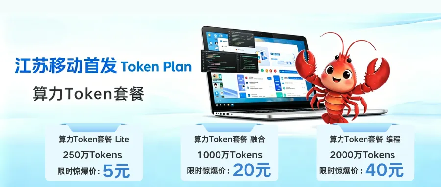 现在,江苏移动「龙虾AI Token套餐」购买通道已正式开启!5元起就能解锁高阶AI体验,告别Token焦虑,轻松拥抱智能新时代~