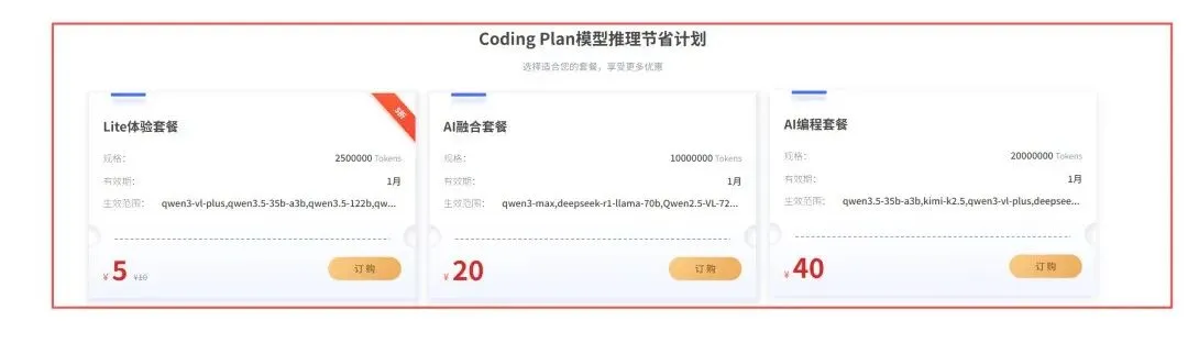 三档套餐,按需选购:覆盖轻度体验、日常使用、重度开发,不浪费每一分预算