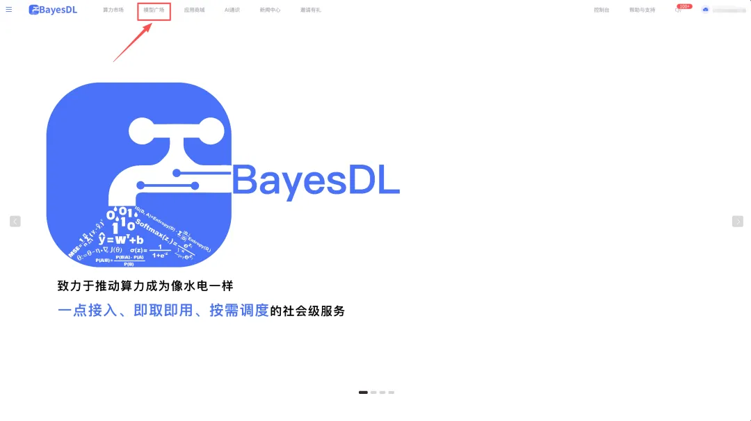 登录平台后,点击「模型广场」。