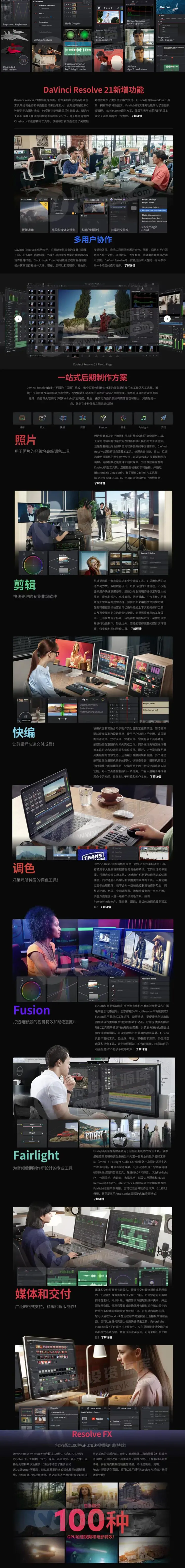 这一版本最大的惊喜在于“跨界”。DaVinci Resolve Studio 21 不再仅仅是一款视频后期软件,它正式进化为一款集平面修图、视频剪辑、调色、特效、音频制作于一体的全能型创作工具