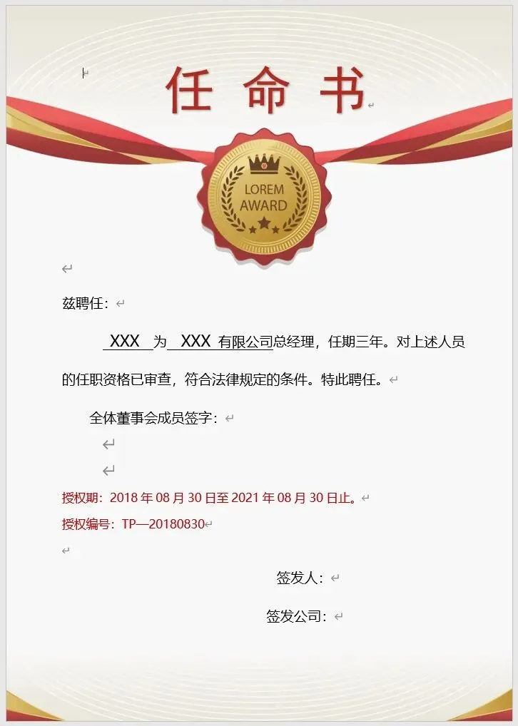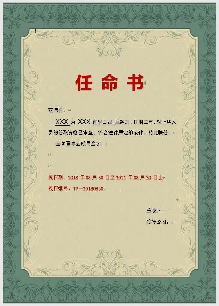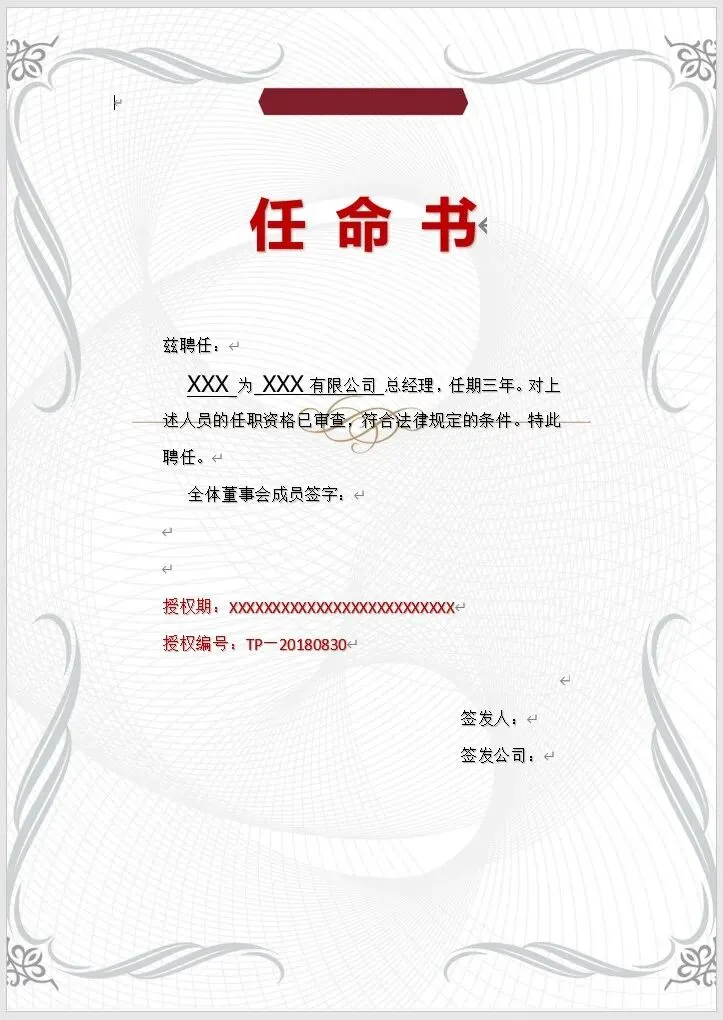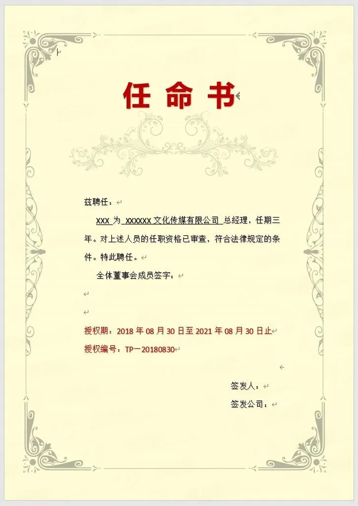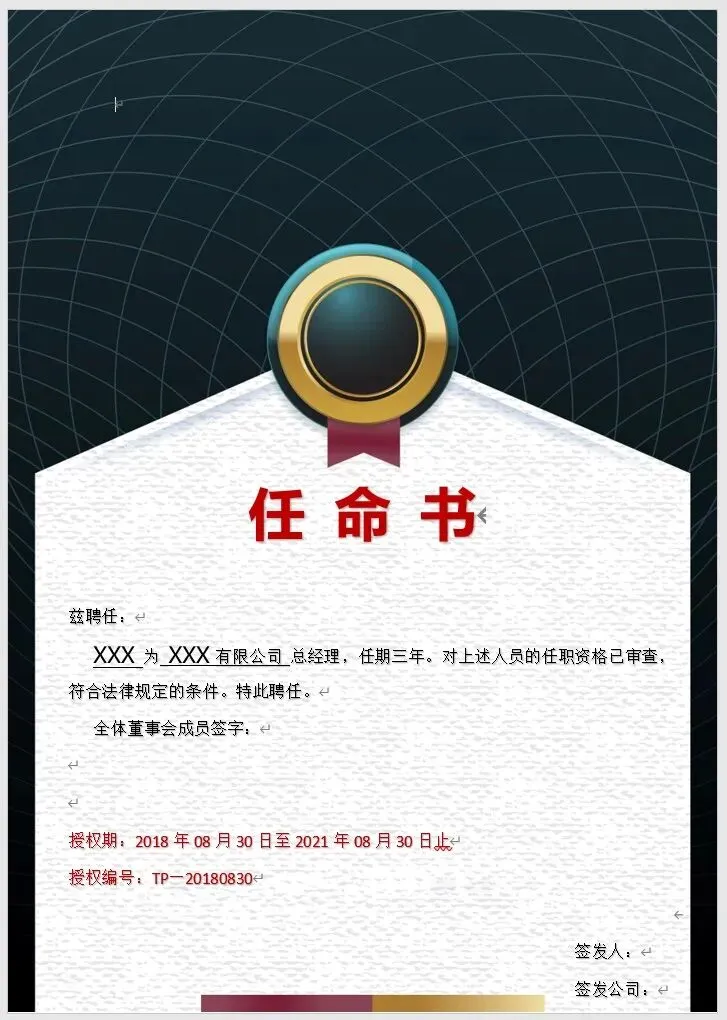 《人事任命管理》资料包内含57份各种样式的任命书模板,横版竖版都有,word格式,可编辑修改,以及8份任命书红头文件模板,共计65份文件。