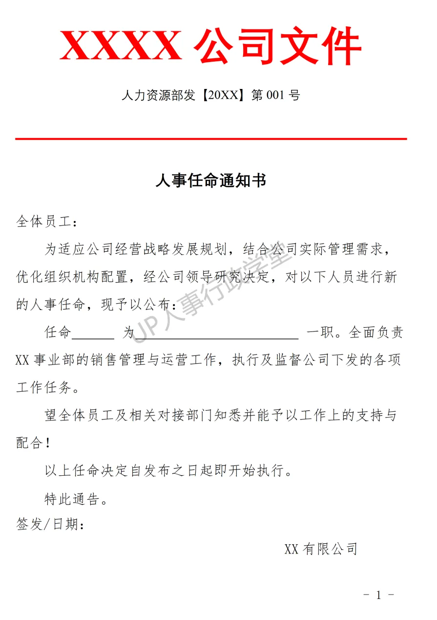 获取方式见文末。文件夹位置:人力资源板块—106 人事任命管理