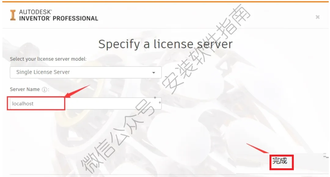16.服务器名称输入:localhost 点击 完成(若没有此步骤,也没事)