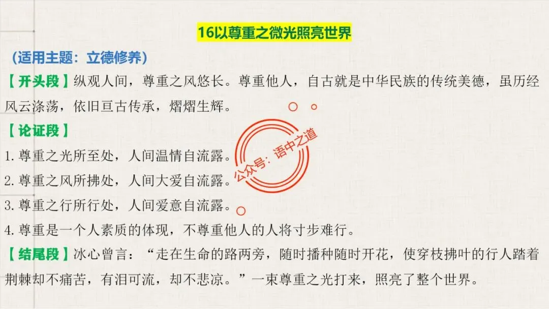 【对标真题】高分【议论文模板】100组(标题+开头段+论证段+结尾段),附实战演示,考前冲刺背,下笔如有神精品资料导航课本宝藏统编【全5册】完全梳理【全套目录+单元解读+课文阐释】统编【全5册】28个单元完全梳理(导语+学习写作任务)统编【全5册】136篇课文核心知识点【背景+主题+手法】统编【全5册】课文考点表格梳理+136篇课文逐课梳理统编【全5册】核心知识表格梳理,附高考教考衔接全题型统编【全5册】60篇古诗文【导图+全解+情境】统编【全5册】60篇古诗文【原文+翻译+赏析+情景默写】统编【全5册】60篇古诗文全项通关【460页精品训练宝典】统编【全5册】40首古诗词【易错框选+重点词阐释+挖空】统编【全5册】古诗文【导图精解+易错字解析】【师生版】统编【全5册】文言挖空全集(非背诵+背诵篇目)(师生版)统编【全5册】单元主题作文完全梳理统编【全5册】【必修上册】单元主题作文深度梳理统编【全5册】【必修下册】单元主题作文深度梳理统编【全5册】【选必上册】单元主题作文深度梳理统编【全5册】【选必中册】单元主题作文深度梳理统编【全5册】【选必下册】单元主题作文深度梳理统编【全5册】之必修上册【单元写作任务】全梳理统编【全5册】【必修上册】(作文素材)完全梳理统编【全5册】课内作文素材【一课文一挖掘】统编【全5册】八大主题作文素材【完全梳理+实战应用】统编【全5册】古诗文【情感+易错字】【教师版+学生版】统编【全5册】小说完全梳理【文本+主旨+题材+考点】统编【全5册】小说完全梳理,图文并茂!统编【全5册】散文完全梳理统编【全5册】【小说+散文】考点【表格梳理+逐课梳理】统编【全5册】小说知识点全梳理(人物+环境+情节+标题)统编【全5册】散文知识点全梳理(结构+语言+手法+标题)统编【全5册】古诗知识点表格梳理【表达方式+手法+结构】统编【全5册】成语汇总(教师版+学生版)统编【全5册】课本内文言实词(200个)表格梳理统编【全5册】文言实词【逐册逐个梳理+分类整理】统编【全5册】教材散文完全梳理【表格梳理+逐课梳理】统编【全5册】【图文型】名句默写汇总统编【全5册】名篇名句默写题目大全【含图文型默写】统编【全5册】文言篇目【挖空+练习】【学生版+教师版】篇幅限制,只显示部分内容综合知识2026年教学1号文件高考命题要求,【教考衔接】被强调2026年教学1号文件高考命题要求,【情境化试题】被强调2026年教学1号文件,【科技创新】类作文押题全梳理2026年教学1号文件:注重考查基础,语文基础知识186页2026教学1号文件+课标【科技创新+人工智能】融入考题【红色文化】修订版课程标准讲透(红色小说+红色作文)【高屋建瓴】2026届高三语文二轮复习计划+备考策略【上兵伐谋】2026届高三语文二轮复习计划+备考策略【最全梳理】作文、小说、信息文本、散文【知识整理】【晨读资料】80组80天,(日积月累, 厚积薄发)【知识清单】语文知识多板块梳理【成语+谦辞+病句+】【教考衔接】全题型梳理,依标教学,顺势而为!【思维导图】高中语文六大题型合集【巧学语文】【实战技法】高中语文各题型【答题套路】一文通【语文试卷】做题顺序+答题方法,知己知彼,百战不殆!【知识清单】小说、散文、诗歌【答题模板+课内知识梳理】【核心题型】考点全梳理【思维导图+知识表格+真题教材】【创新题型】【散文、小说、语用】汇总试题(含答案)【考前冲刺】答题【套路+反套路】汇总之小说、散文、诗歌【零差错背】高中语文统编教材60篇背诵篇目【课本原版】【整本书阅读】《红楼梦》前80回【思维导图】【整本书阅读】《乡土中国》全套梳理【思维导图】信息文本【课本典例】讲透信息类文本阅读(教考衔接通透知识点)【回归课本】信息类文本【全题型】解析【客观题+主观题】【对标真题】信息类文本【主观题+客观题】全套通关宝典【教考衔接】20-25年信息文本真题+教材内信息文本梳理【教考衔接】信息文本全题型解析【考情分析+回归课本】【知识清单】信息类文本五大题型【内容理解+文本推断+】【二轮复习】信息文本重要考点全梳理,附26届名校模考小说阅读【知识清单】高中语文小说阅读知识全梳理!【教考衔接】讲透高中语文【小说阅读】【对标真题】小说阅读【五大类型】完全梳理【对标真题】小说【叙述艺术】一课通【对标真题】小说【人物形象】一课通【对标真题】小说【主题思想】一课通【回归课本】统编教材【全5册】小说逐课梳理【教考结合】2020-2025年小说真题+教材内小说【立足课本】讲透高考热考题型—【红色小说】【立足课本】讲透高考热考题型——乡土小说【课内小说】讲透【小说18个考点】(情节+主题+人物)【真题小说】讲透【小说考点】(手法+人物+叙述视角)【课内真题】讲透【24个小说考点】(叙述视角等)【依托课本】内小说典例,讲透小说【六大知识板块】【热考题型】散文化小说【一课通透】【真题+课本】【一个课件】讲透小说【叙事艺术】(视角+人称+方式)【一课讲透】小说阅读【万能模板】+【反套路题型】【通关宝典】小说阅读【主观题+客观题】全套梳理【知识全套】小说阅读全套【知识清单+反套路题型】【万能模板】小说阅读答题套路,考前冲刺,可直接套用!【四大类型】小说