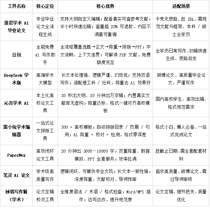 8款AI毕业论文工具