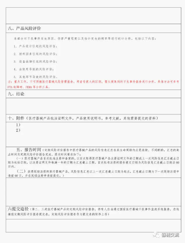 2.1.1首次获得批准注册或者备案的医疗器械,注册人应当在每满1年后的60日内完成上年度产品定期风险评价报告。其中第二、三类医疗器械的《定期风险评价报告》,注册人应当通过国家医疗器械不良事件监测信息系统提交,在线填写《定期风险评价报告》提交表(参见附表2),《定期风险评价报告》作为提交表的附件上传。第一类医疗器械的《定期风险评价报告》由备案人留存备查。