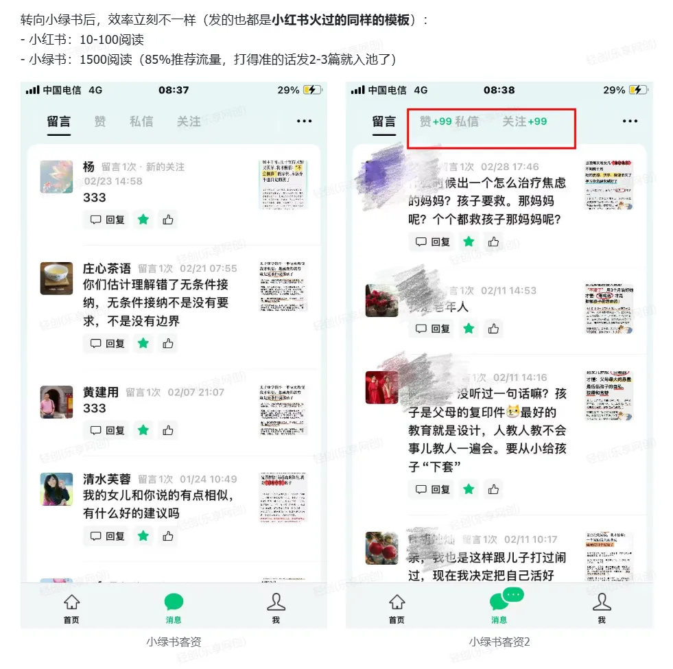 更重要的是:小绿书的用户群体,和高客单赛道的目标客户高度匹配——大多是有一定消费能力的家长、职场人,他们有需求、有付费能力,不像小红书,泛流量太多,精准客户难筛选。