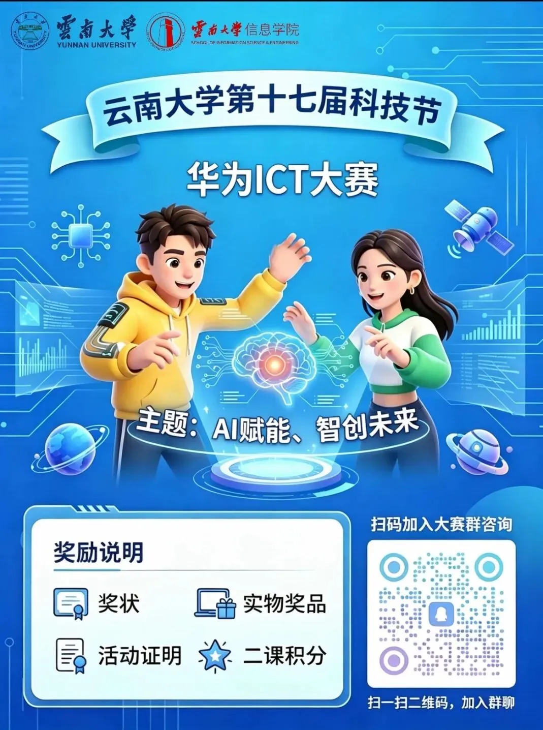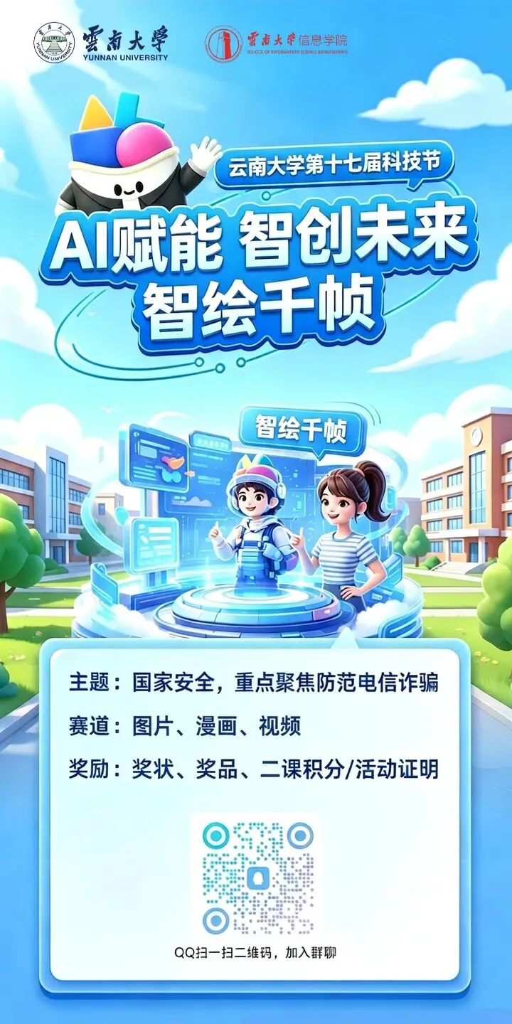 云南大学第十七届科技节已经拉开帷幕。期待每一位心怀热爱、勇于探索、敢于突破的云大学子积极参与,在科技实践中增长本领,在创新挑战中淬炼能力,在更广阔的舞台上绽放青春风采。