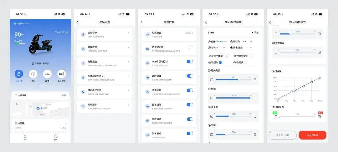 内置Eco节能、Drive标准、Sport运动、Stunt特技(越野专用)等多种骑行模式,支持远程调节转速、牵引力、功率、馈电强度及油门曲线,特技模式下可自定义翘头等进阶玩法,随心打造专属骑行风格。