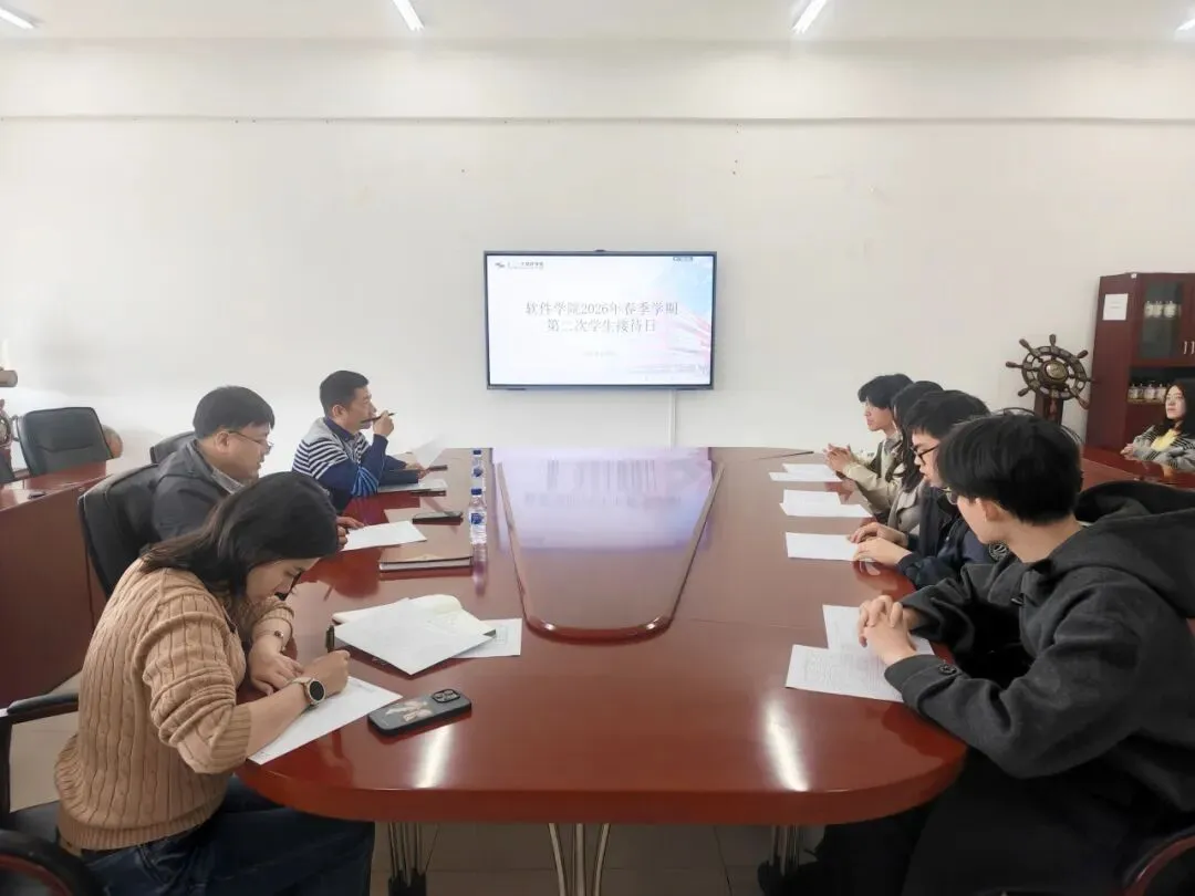 2026年4月8日,软件学院于浑南校区信息学馆B座539室开展2026年春季学期第二次学生接待日。学院副院长徐剑、梁振及相关部门负责同志出席,共计21名本科生代表参加活动。
