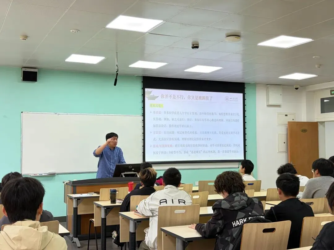 活动伊始,黎红友副书记以“从‘学不进去’到‘掌控学习’”为讲座主题,围绕“计算机类本科生如何借助人工智能开展学习”“如何科学规划人生与未来”等同学们所关注的重点问题,作了深入浅出的分享。他结合优秀学生的学习成长经历,从学习方法、科研入门、时间管理等方面展开讲解,鼓励同学们在人工智能快速发展的时代背景下,主动适应技术变革,夯实专业基础,明确发展方向,并鼓励同学们树立信心、增强动力,以积极的心态迎接大学阶段的机遇与挑战。