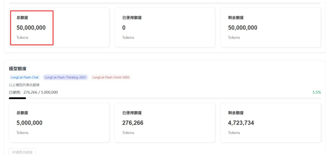 A:LongCat 每天赠送的 Token 量非常慷慨,普通用户很难用完。万一真用完了,第二天零点自动重置。