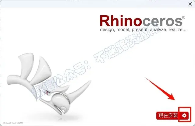 4.选择软件安装路径,建议和教程中的保持一致,本例安装到D盘(将路径地址中的首字符C改为D表示安装到D盘,安装路径不要出现中文),取消勾选“允许Rhino自动下载可用更新”和“发送匿名安装统计...”,点击“现在安装”