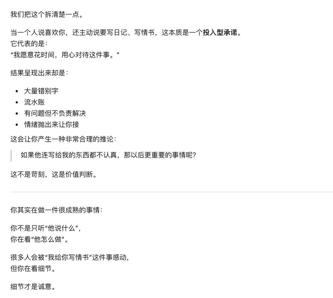 在感情中遇到诸如此类的事情,你一定要清楚:短期迎合 ≠ 长期成长。