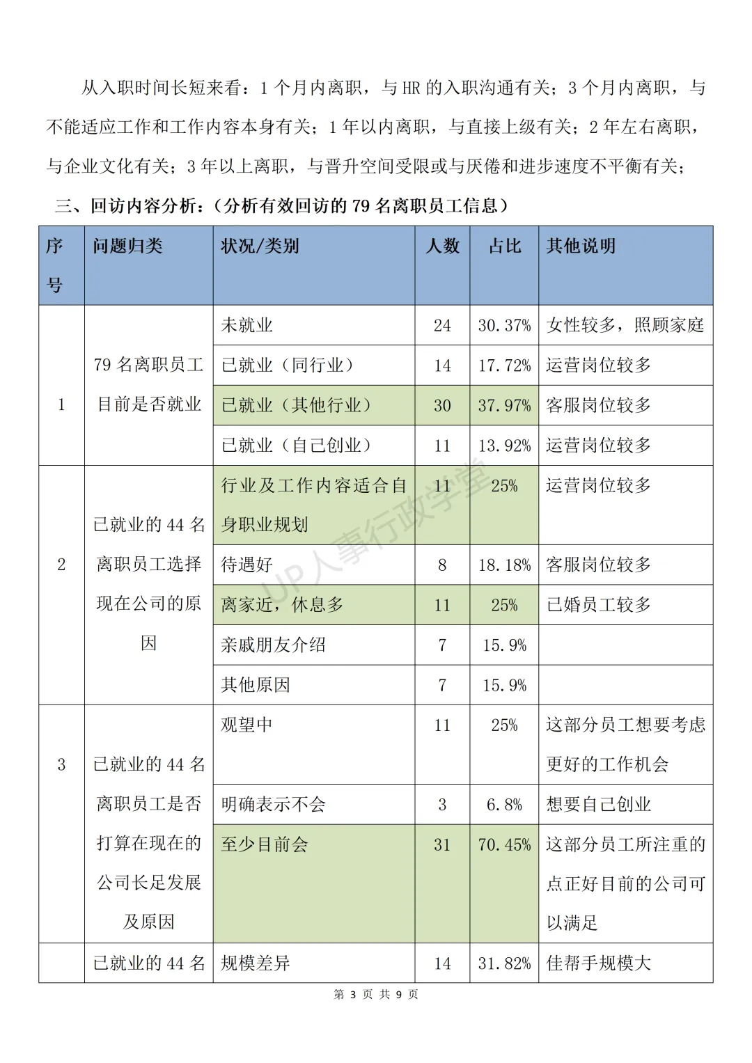 《人才流失分析》资料包内含各部门月度离职细模板、离职人员回访结果分析报告、离职率管控考核方案、入职于离职人员统计分析报表等,共计40份文件。