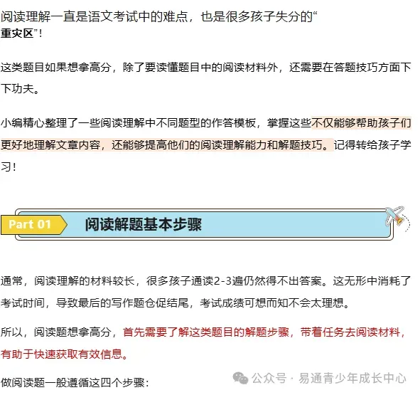 语文学霸「阅读题」答题模板!转给孩子!(附33套解题公式)