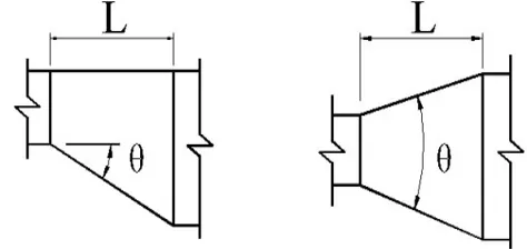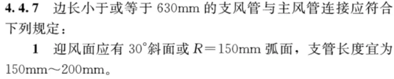 风管变径管单面变径的夹角不宜大于30°,双面变径的夹角不宜大于60°,圆形风管支管与总管的夹角不宜大于60°。