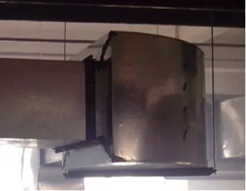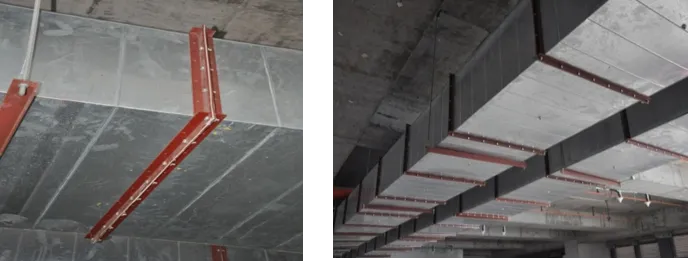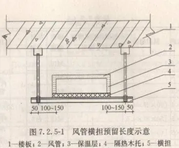 当风管穿过需要封闭的防火、防爆的墙体或楼板时,必须设置厚度不小于1.6mm的钢制防护套管;风管与防护套管之间应采用不燃柔性材料封堵严密。
