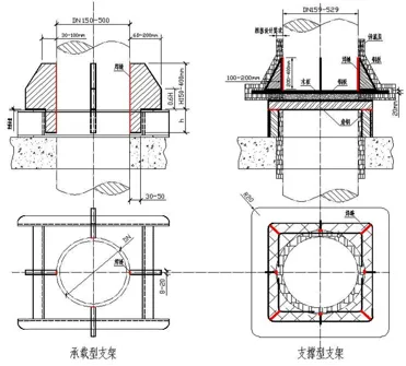2.直径或长边尺寸大于或等于630mm的防火阀,应设独立支、吊架