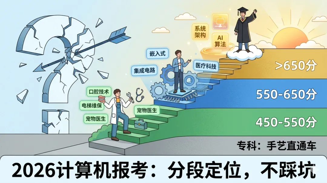 不同层次的学生,面对的是完全不同的就业市场、竞争格局和替代风险。下面按分数段拆开说清楚。