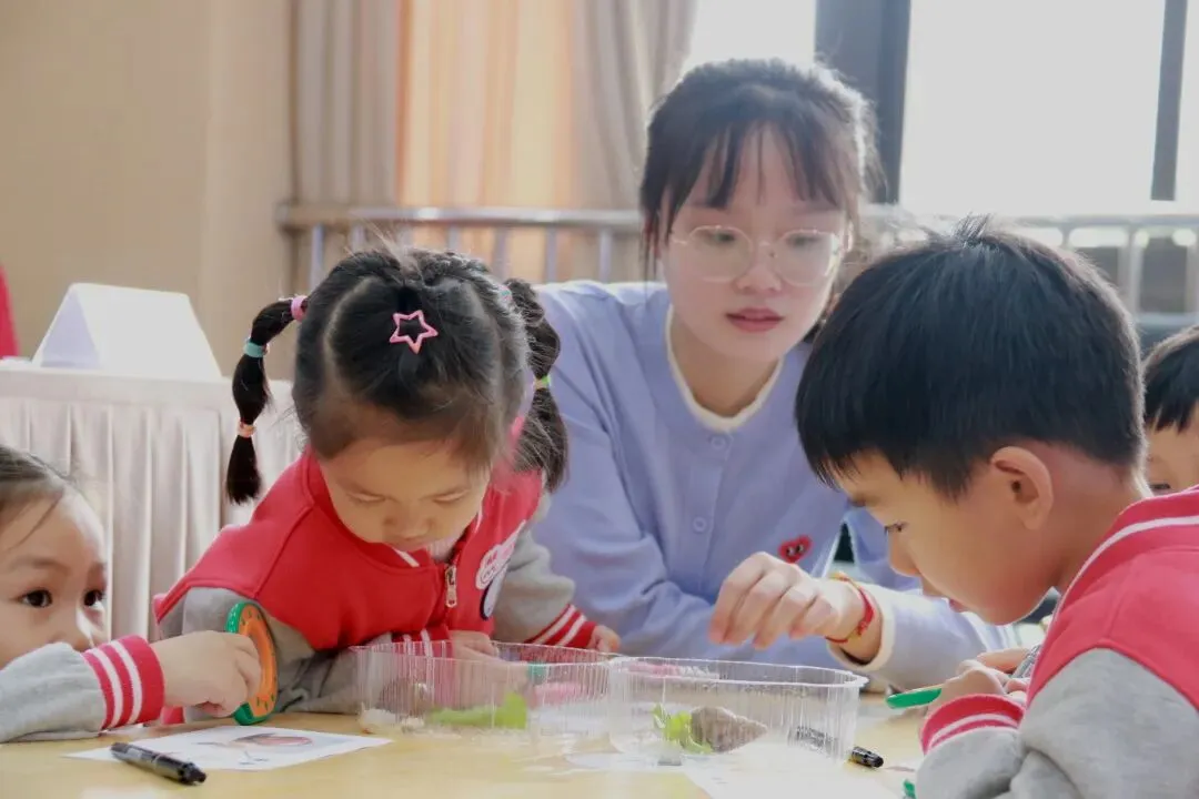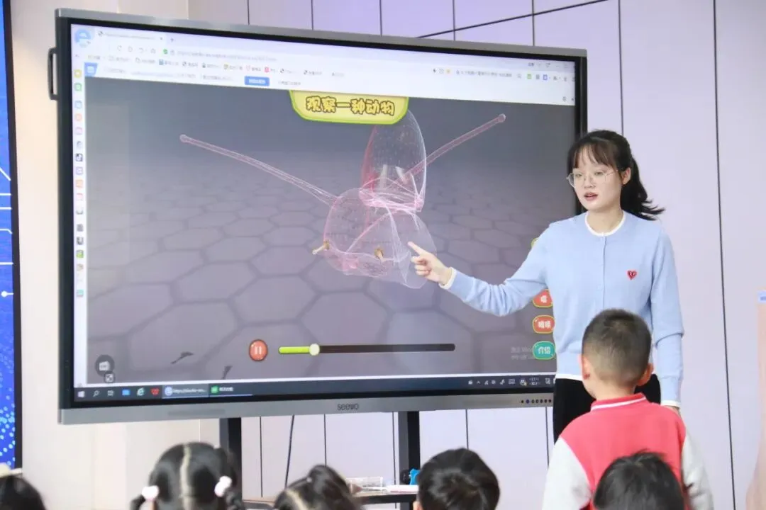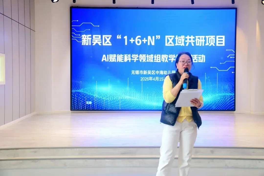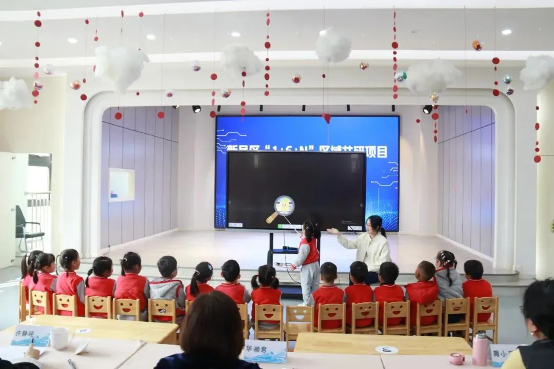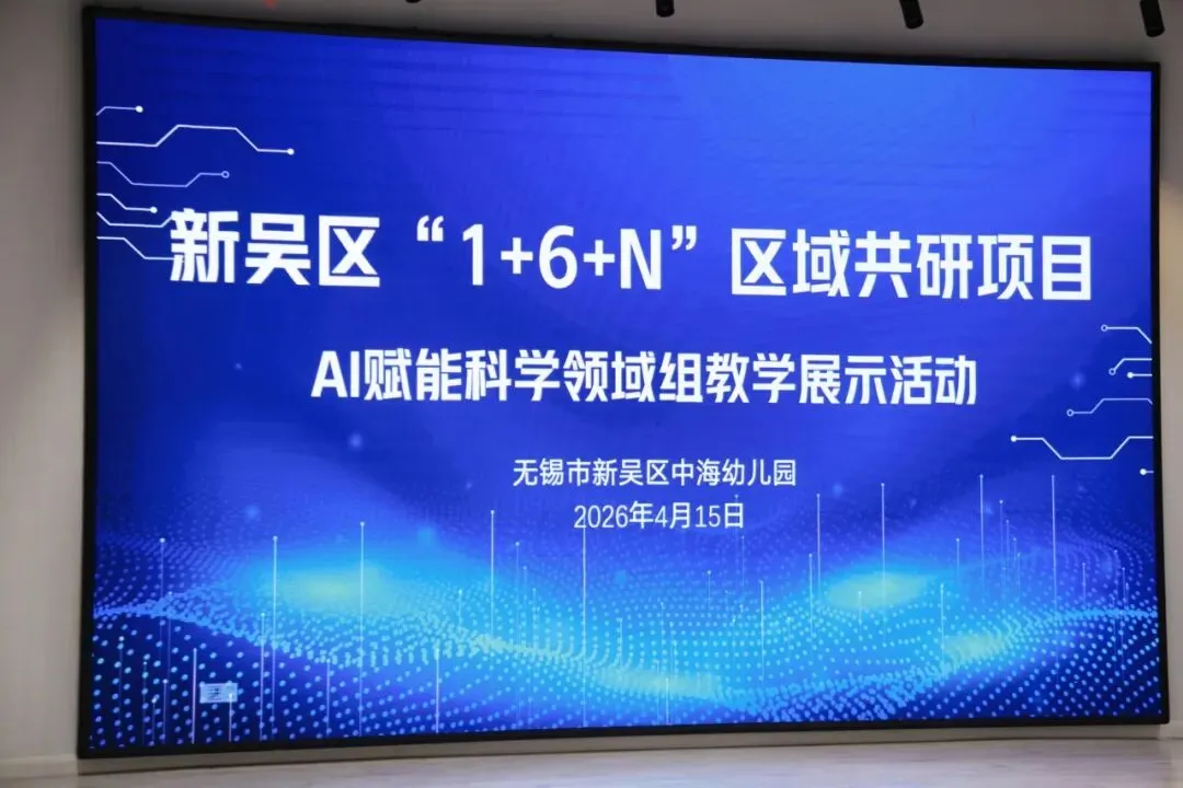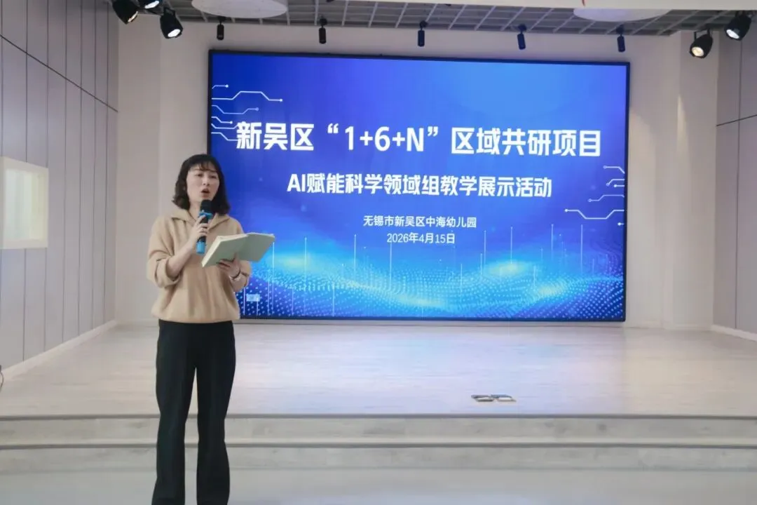 为进一步贯彻《3-6岁儿童学习与发展指南》精神,推进教师教育活动设计与实施能力的提升,2026年4月15日,新吴区幼儿园科学领域组青年教师展示活动在中海幼儿园分会场顺利举行。来自各教育集团的骨干教师与青年教师齐聚一堂,观摩五节将AI数智化技术与科学探究深度融合的精彩活动。