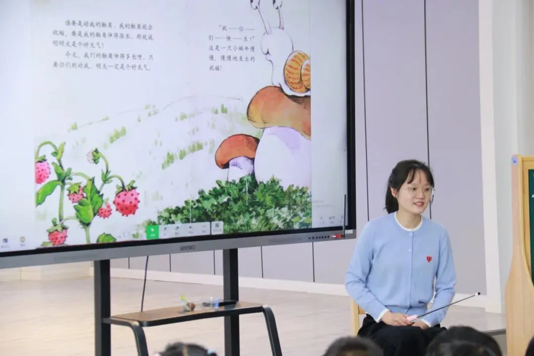 张老师以绘本《蜗牛的日记》为引,带领幼儿走进蜗牛的微观世界,通过两个小实验验证蜗牛的视觉与嗅觉。活动中,张老师巧妙引入3D展示工具,现场观察蜗牛的身体结构,让科学探究插上智能化的翅膀。