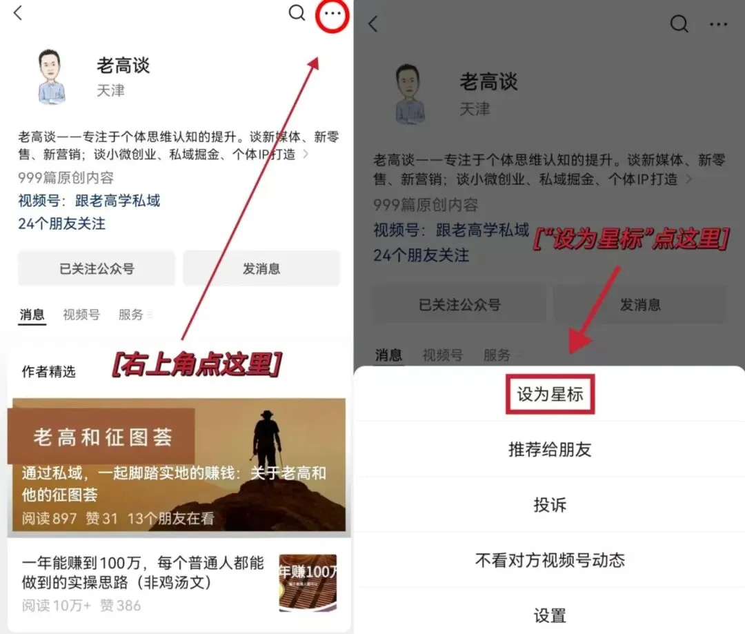 点击上方☝『老高谈』公众号卡片➪点击右上角...符号➪选择第一个“设为星标”⭐