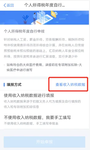 纳税人进入自行申报页面,可点击“查看收入纳税数据”,点击展示“收入纳税数据”,如下图: