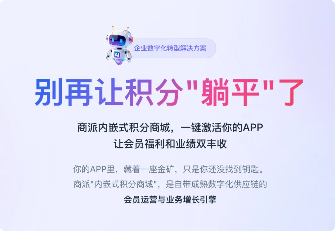 别急!商派的“内嵌式积分商城”解决方案,就是为你量身打造的“破局神器”。它不仅仅是一个工具,更是一套“自带京东成熟供应链”的会员运营与业务增长引擎,能让你在不改变现有APP架构的前提下,瞬间拥有一个功能强大、商品丰富的“掌上积分商城”。一、什么是商派内嵌式积分商城?