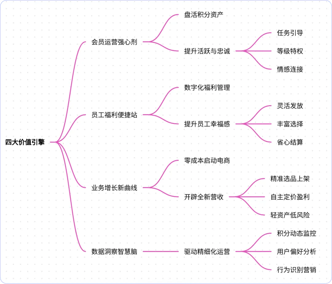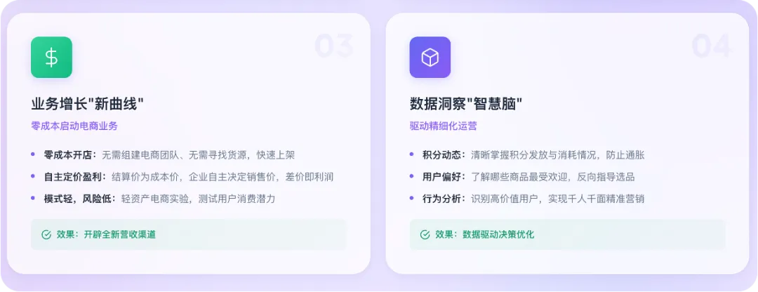 效果:用数字化手段提升员工福利体验,增强归属感与企业凝聚力,将福利预算的每一分钱都花出最大价值。引擎三:业务增长“新曲线”,零成本启动电商业务