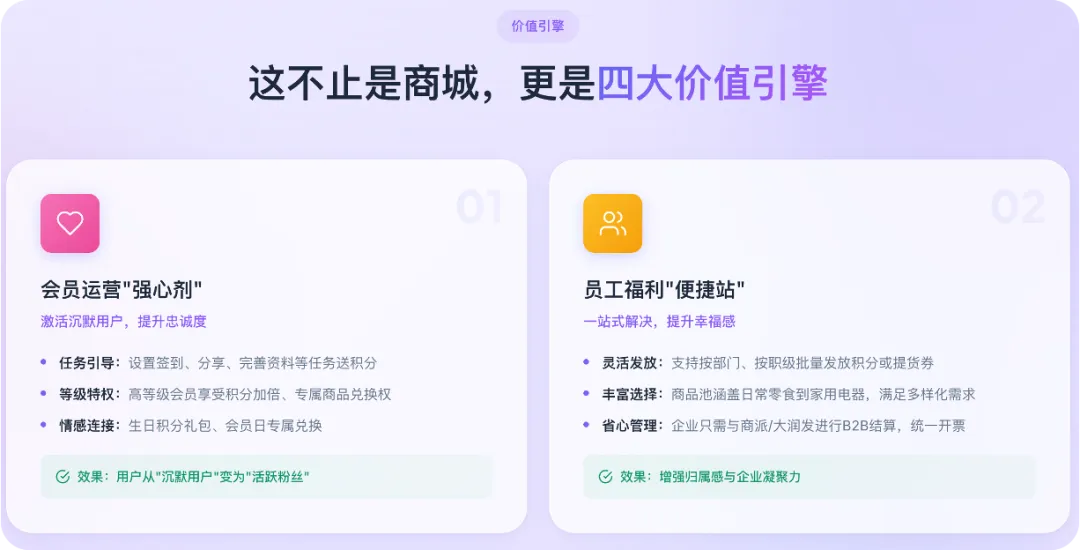 效果:积分从“成本”变为“增长动力”,用户为赚取和消耗积分而更频繁打开你的APP,从“沉默用户”变为“活跃粉丝”。引擎二:员工福利“便捷站”,一站式解决,提升幸福感