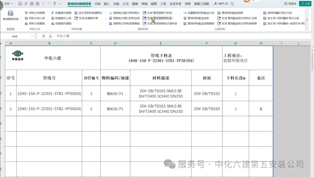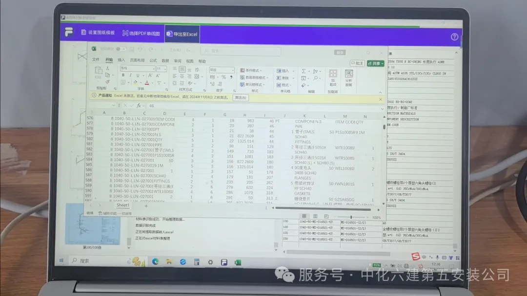 在施工准备阶段,技术员利用AI单线图材料提取工具,自动提取管道单线图材料表数据并整理汇总成表格导出,实现3人7台电脑2天提取汇总8000张图纸材料的效率,AI自动化办公极大减轻技术员负担,为后续管道焊接和材料管理打下数据基础。材料匹配 精准发料