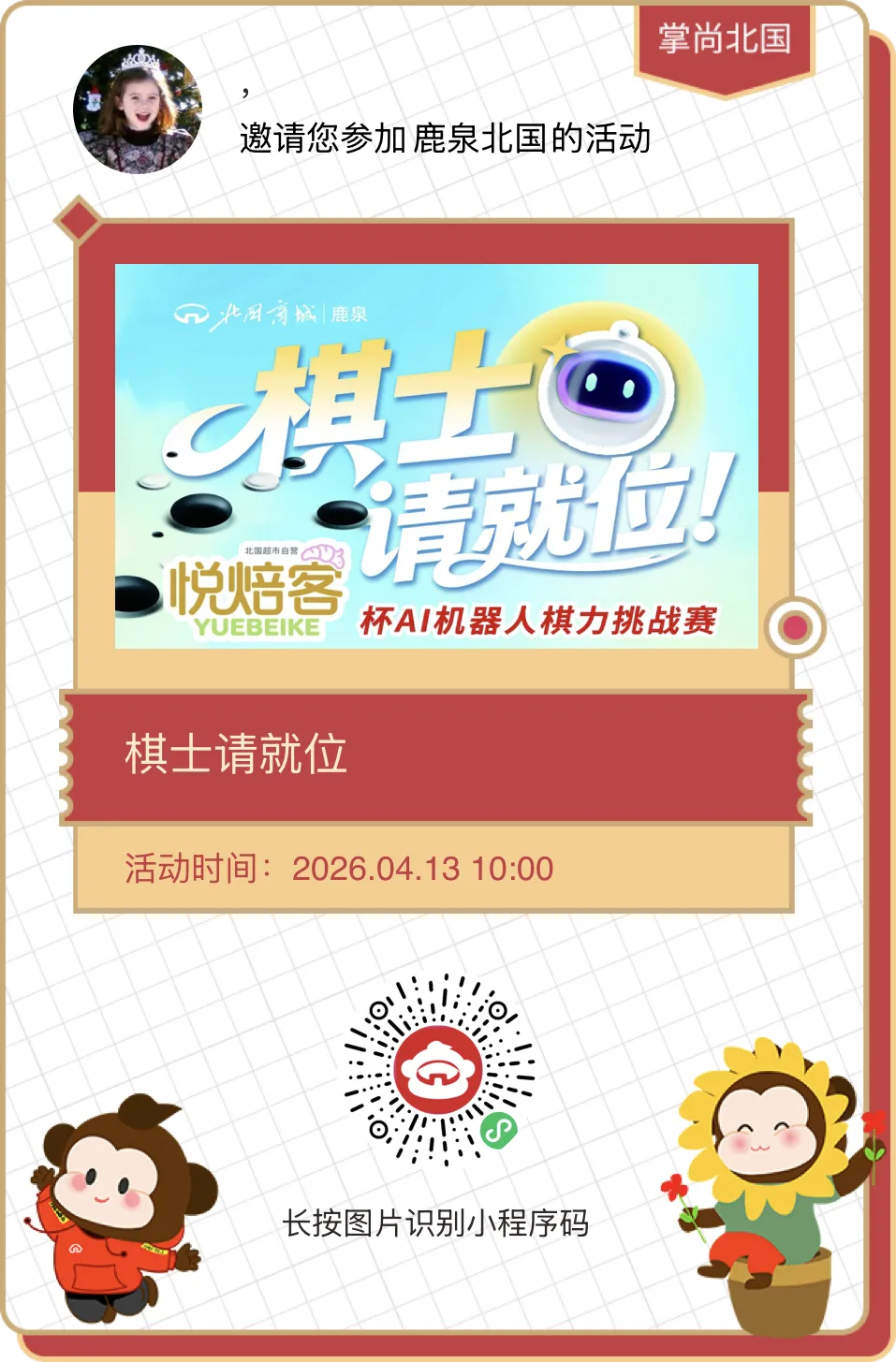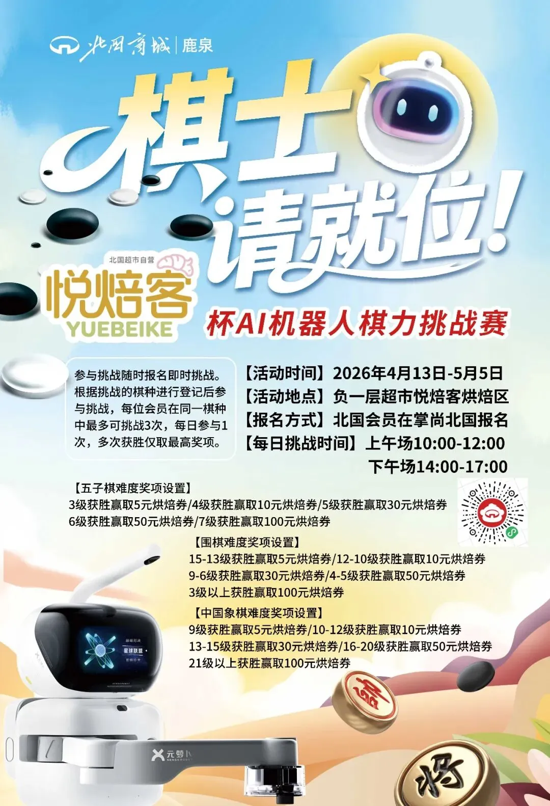 鹿泉北国商城|AI机器人棋力挑战赛线上招募啦~最高可获得100元烘焙券